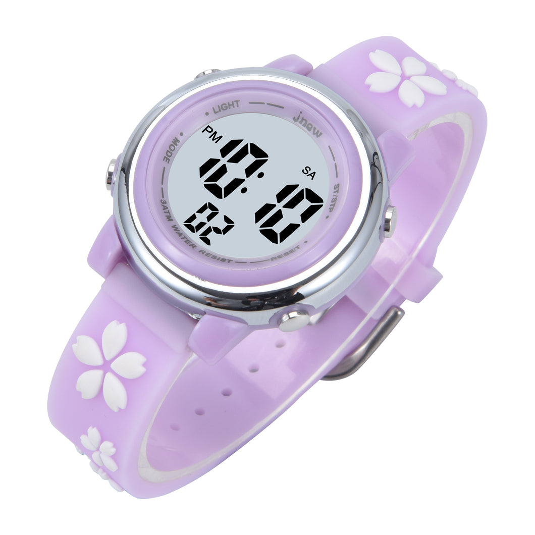 This is a cherry blossom themed light up digital watch with an easy to read large digital display. It has 7 different coloured lights to light up the watch at night which looks really cool. This watch has a smooth soft strap that fits really nicely. This pattern is popular for girls!