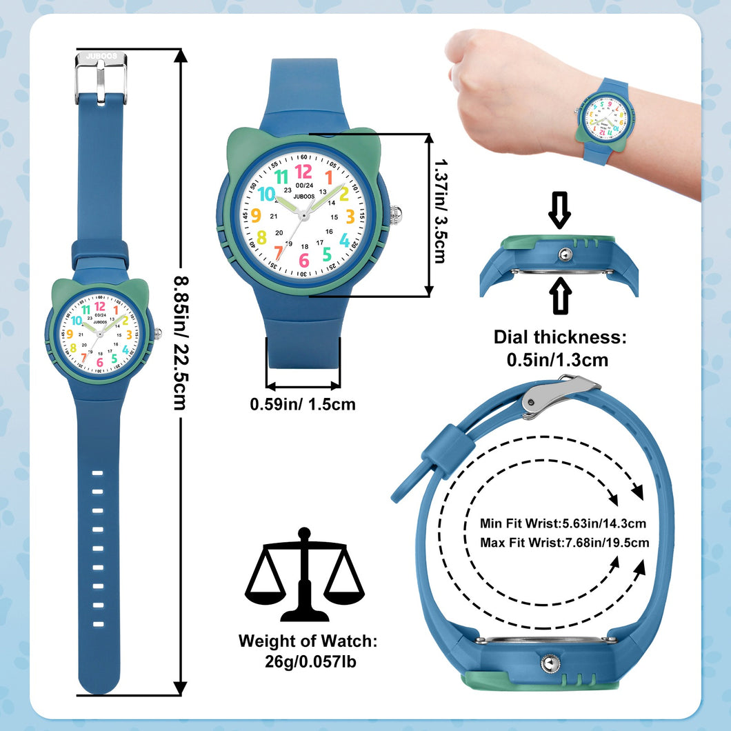 Learn to tell the time with two sets of learning numbers on this cute cat ears watch. The numbers on the outside to learn about the minutes and 24 hour numbers in the middle to help teach. Featuring a nice comfortable strap and an easy to read dial.