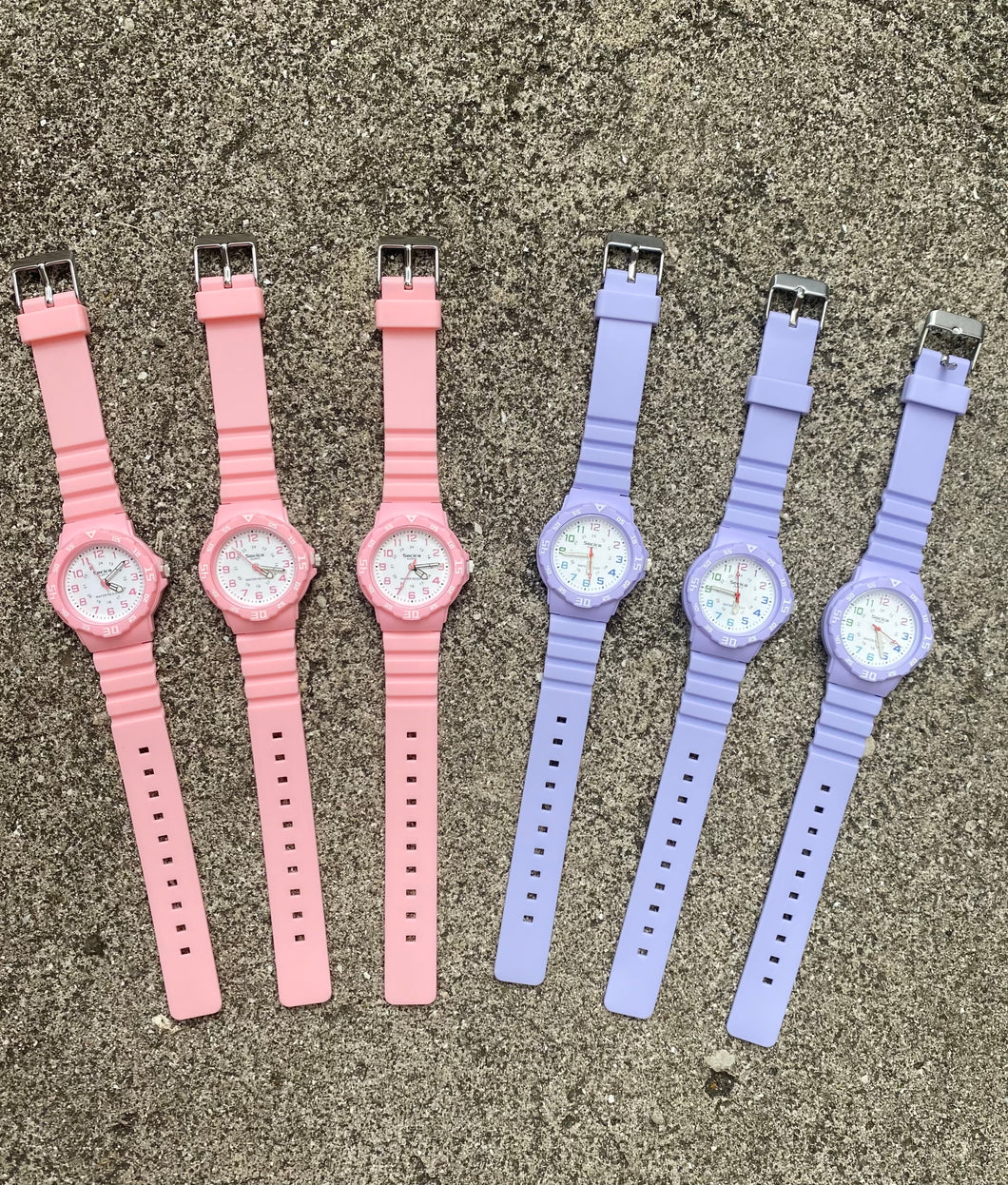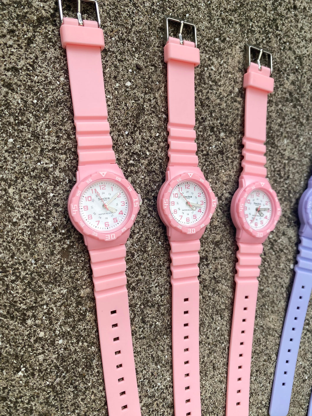 Vibrant pink girls analogue watch …. Almost a replica of a small G Shock watch (back in the day.) Grandaughter (6 yrs) ) loves it. Just right size for her arm!! Soft strap with loop makes a nice snug fit.